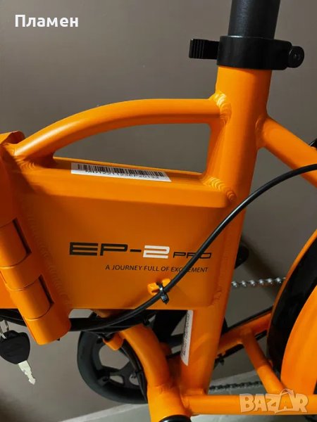 Сглобява се лесно: просто трябва да монтирате предното колело, кормилото и педалите, да поставите батерията и можете да тръгнете. Сгъваемата горна тръба и рамка го правят преносим и лесен за съхранение в колата ви или навсякъде другаде, където можете да го използвате. Сгъването на велосипеда отнема 10 секунди.
