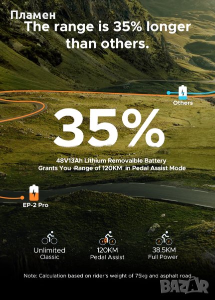 -Максимален пробег: 60км/ч