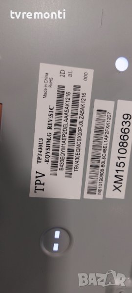 борда е гарантирано работещ Демонтиран от телевизор PHILIPS модел. 43PUK4900/12 със счупен дисплей TPT430U3-EQYSHM.G revS1C тесвана от нашия техник
