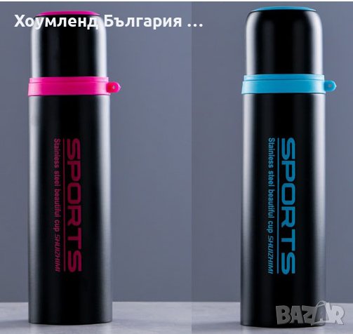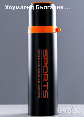 Висококачествен термос с надпис SPORT. Изработен с двойни термоустойчиви стени от неръждаема стомана.