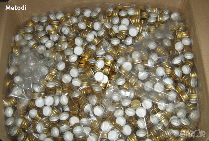 Алуминиеви капачки за бутилки без резба. Размер 28х18, цвят златист 100 бр. → Обява 42199424