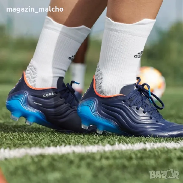 Насладете се на футбола с калеври Adidas. Използвайте модел COPA SENSE.1 FG за игра на стадиони или терени с естествена трева, направени от най-новите материали и технологии за невероятно докосване и контрол на топката. Тези футболни обувки предлагат великолепно сцепление, благодарение на формованите бутони, разположени стратегически за да ви осигурят сцеплението и бързо движение по терените. Омекотената стелка осигурява удобство, а дизайна тип Чорап и закрепването с връзки стабилност и комфорт.