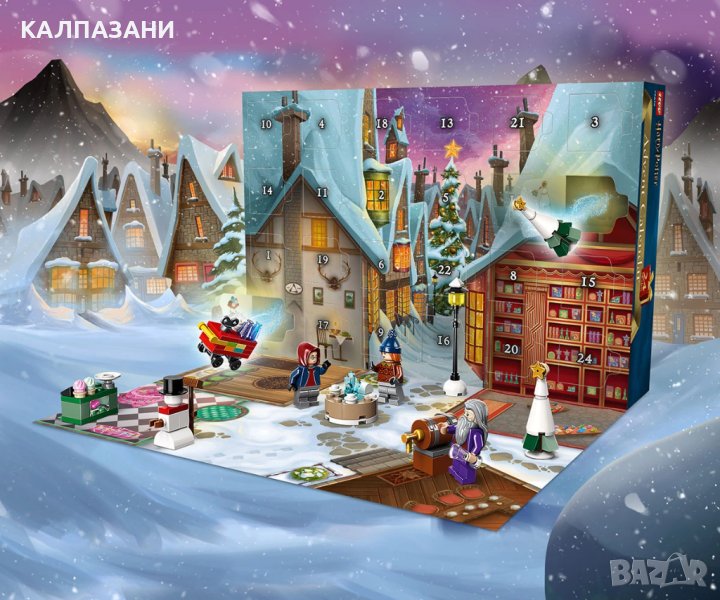 Създайте вълнение за Коледа с коледния календар LEGO® Harry Potter™ за 2023 г. на тема село Хогсмийд. Намерете мини конструкции, за да пресъздадете емблематични характеристики на кръчмата „Трите метли“, кръчмата „Свинска глава“, магазина за шеги на Зонко и сладкарницата „Меденото царство“. И се оглеждайте за любими герои в зимно облекло, за да разигравате по роли завладяващи сцени от Хогсмийд. Зад всяка вратичка има магическа изненада!