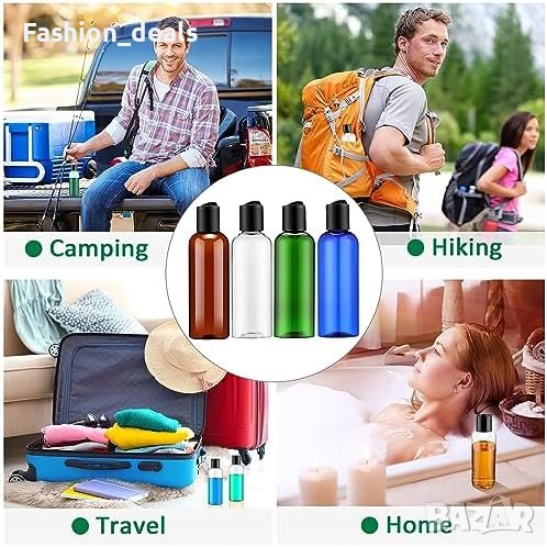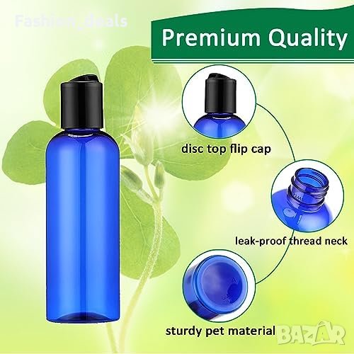 Нови 6 броя пластмасови бутилки 100мл с дискова горна капачка течни лосиони козметика