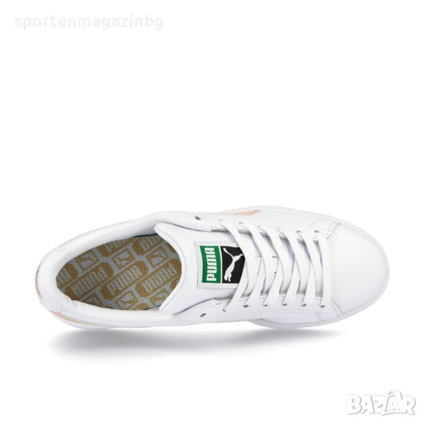 Външна част, която се състои изцяло от естествена кожа за комфорт и лесна поддръжка. Допълнително подсилени в областа на петата. Обшити от всички страни за сигурност и стабилност. Нисък профил за по-голяма свобода при движение. Надпис и лого Puma върху езика. Златист надпис Puma Basket встрани и лого отзад. Вътрешна, гладка кожена част и текстилна стелка осигуряват невероятна мекота и комфорт с всяка крачка. Подметката е каучукова, релефна и изключително гъвкава, осигурявайки перфектно сцепление с различни повърхности.