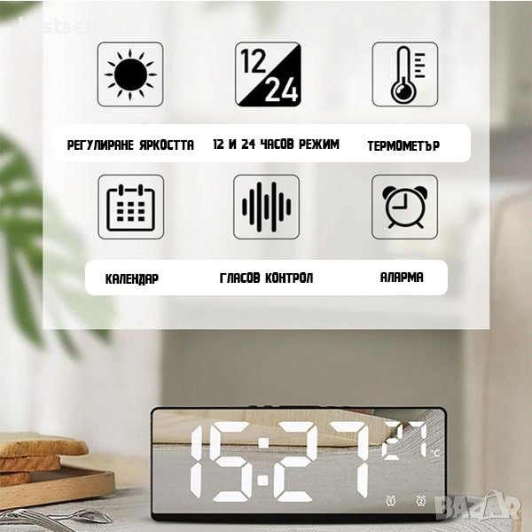 Мултифункционален настолен електронен часовник, който съчетава стил, интелигентност и удобство. Нека ви представим този страхотен продукт, който ще подобри вашата ежедневна рутина: