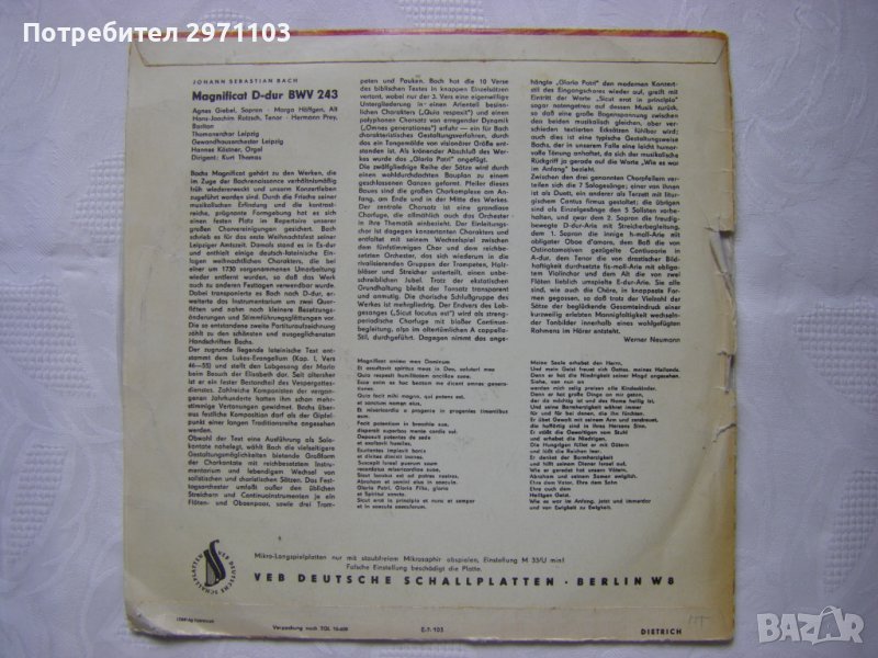 Грамофонна плоча - среден формат - ETERNA 720124 - Johann Sebastian Bach – Magnificat D-dur BWV 243