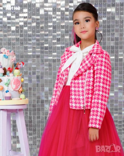 Колекция Barbie 💗 Разкошна рокля с дълъг ръкав и модерно и готино сако/яке в модерно каре, в готин цвят. Размери: 134 см 🛍️ За още моделчета разгледайте и останалите обяви в профила ми.