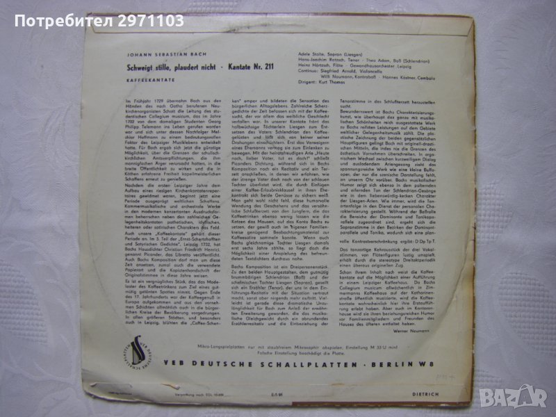 Грамофонна плоча - среден формат - ETERNA 720114 - Johann Sebastian Bach – Schweigt Stille, Plaudert Nicht ... Kaffeekantate BWV 211