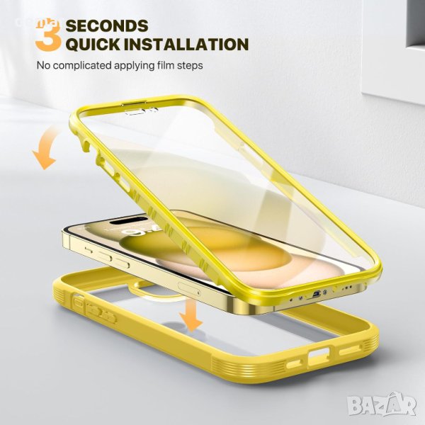 Този калъф осигурява двуслойна защита за вашия iPhone 15, осигурявайки 360° здрава защита на цялото тяло. Мекият TPU ударопоглъщащ материал и повдигнатите четири ъгъла са предназначени да предпазят телефона ви от случайни изпускания и падания. Калъфът включва вграден чувствителен на допир и против надраскване екран протектор. Този протектор за екран е предназначен да предпази крехкия стъклен екран на вашия iPhone от надраскване и пукнатини, като същевременно поддържа чувствителността на допир. Калъфът се предлага с протектор за обектива на камерата от закалено стъкло 9H, специално проектиран за iPhone 15. Този протектор за обектив помага да защитите обектива на камерата, като запазва оригиналната красота на вашите снимки и видеоклипове. Инсталирането на този калъф е безпроблемно. Просто отворете кутията и поставете своя iPhone 15 вътре за незабавна защита. Дизайнът на калъфа гарантира, че той се изравнява перфектно с бутоните отстрани на вашия телефон. Калъфът разполага с повдигнат ръб на екрана с 1,5 mm и повдигнат ръб на камерата с 3,8 mm. Тези повдигнати ръбове осигуряват допълнителна защита за екрана и камерата на вашия iPhone, като намаляват риска от повреда в случай на изпускане. Този калъф е съвместим с iPhone 15 6.1". Той е проектиран да бъде лесен за инсталиране или премахване, което ви позволява да го използвате удобно.