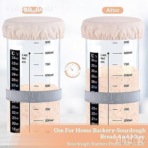 Този комплект включва два съда за закваска за хляб, всеки с вместимост 1000 мл, идеални за поддържане на закваската свежа и активна.