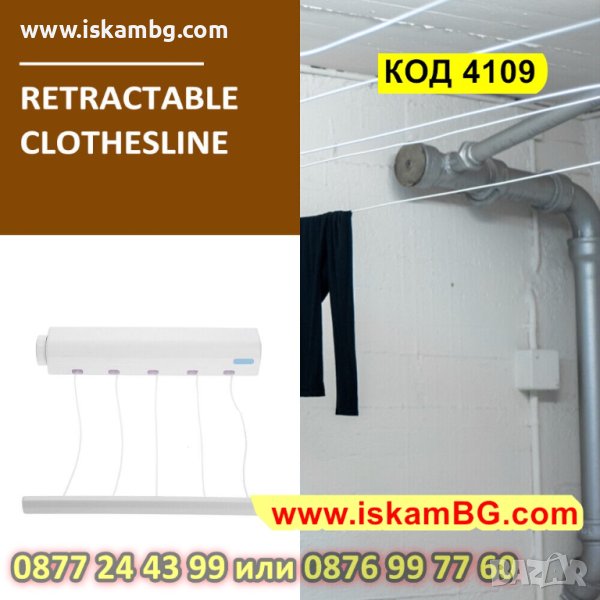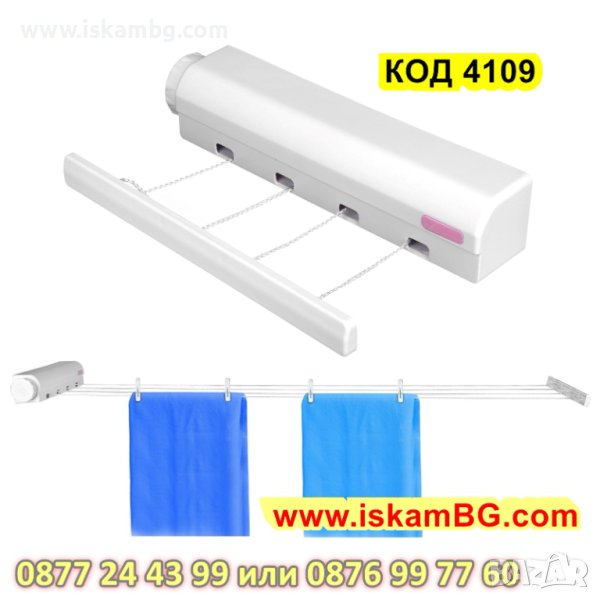Сгъваем въжен простор за дрехи | Автоматичен сгъваем простор за дрехи за стена - КОД 4109