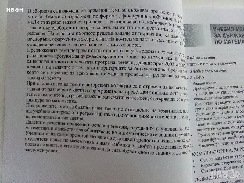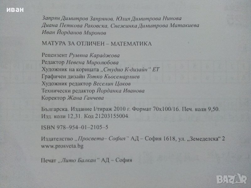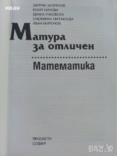 Матура за отличен-Математика - З.Запрянов,Ю.Нинова,Д.Раковска,С.Матакиева,И.Миронов - 2008г. → Обява 42210392