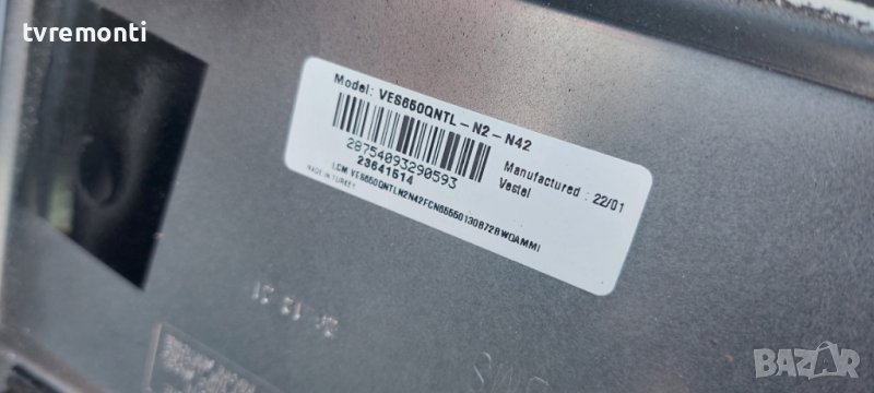 борда е гарантирано работещ Демонтиран от телевизор TOSHIBA модел. 65UA3A63DG, със счупен дисплей VES650QNTL-N2-N42 тесвана от нашия техник