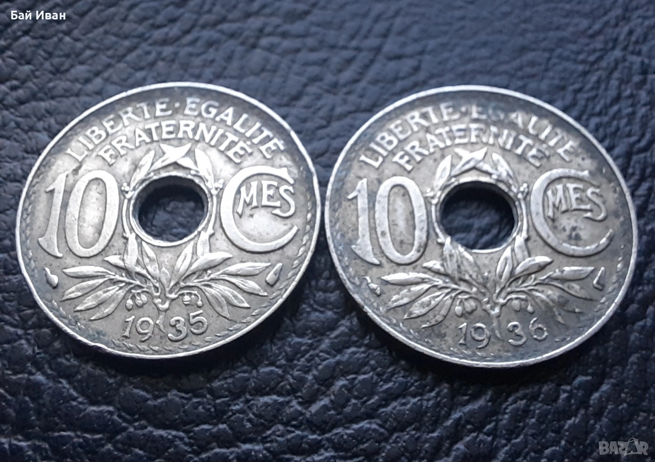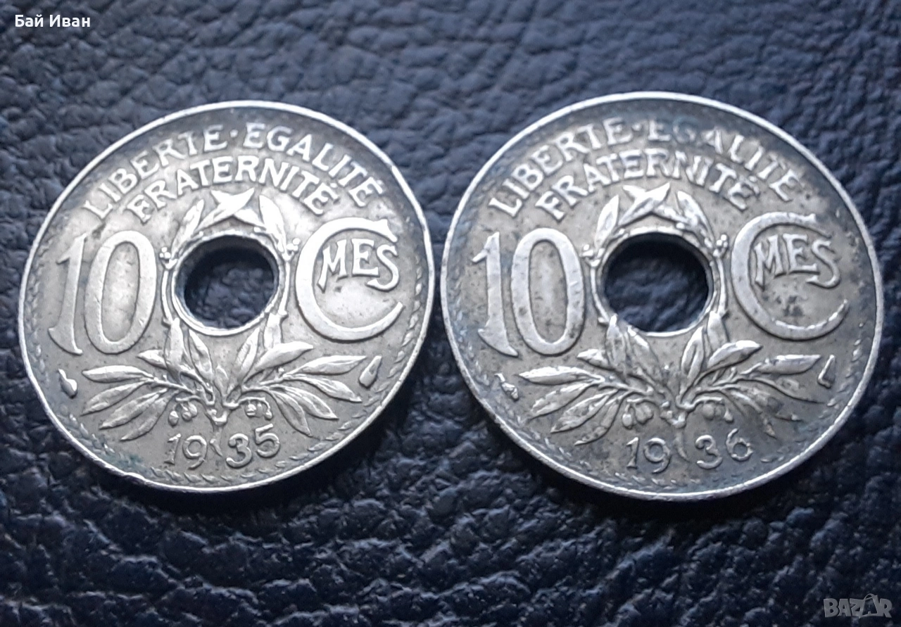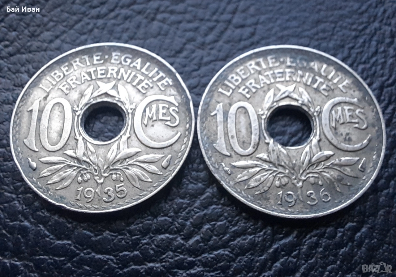 Стара монета 10 сантима 1935 г. и 1936 г.Франция - красиви ! → Обява 42211307
