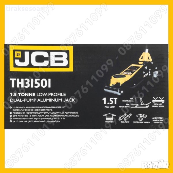 Професионален Нископрофилен алуминиев крик тип крокодил 1.5 тона 85-355 мм JCB