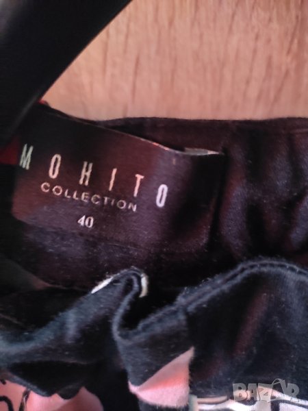 Дамска екстравагантна пола Mohito, има 2 странични джобове, които не се виждат, тъй като се сливат със страничния шев. Отзад има цип. С подплата от хастар и тюл на волани отвътре, за да я повдигат и да създадат обем. Стои страхотно, ако е вашия стил.