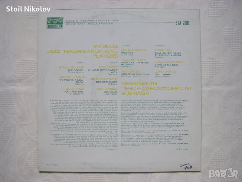 Грамофонна - ВТА 2086 - Знаменити тенор-саксофонисти в джаза
