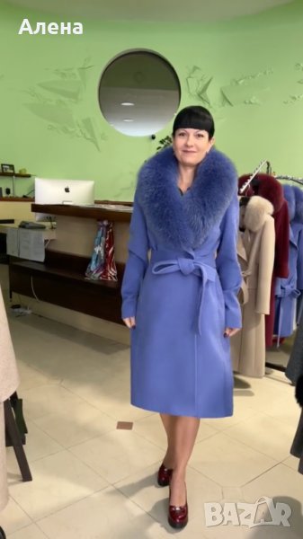 🆕Дамско палто от вълна и кашмир за зимно време, цвят виолетов. Пух от полярна лисица, може да се сваля. Има колан.
