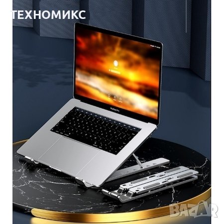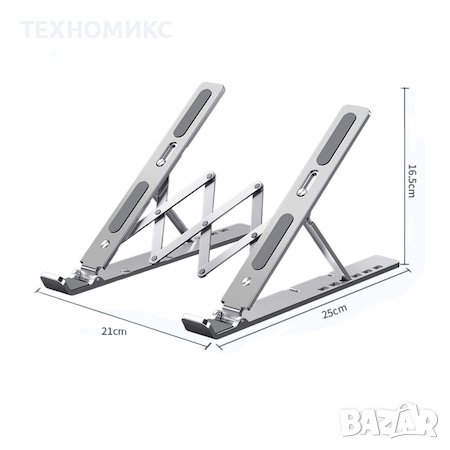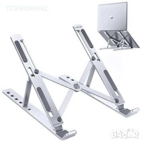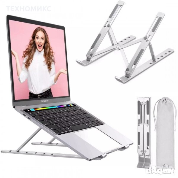 Сгъваемата алуминиева стойка за лаптоп е идеалното решение за правилна стойка по време на работа. Има 7 ъгъла на накланяне, 100% преносим и освен това ще допринесе за най-добрата циркулация на въздуха за вашия лаптоп. Съвместим е с всички размери лаптопи, налични на пазара: от Apple MacBook Air 13 до тези с щедри размери от 17 инча.