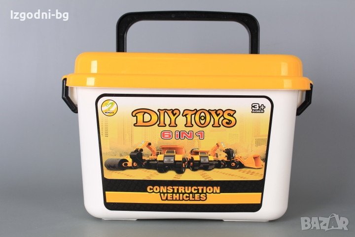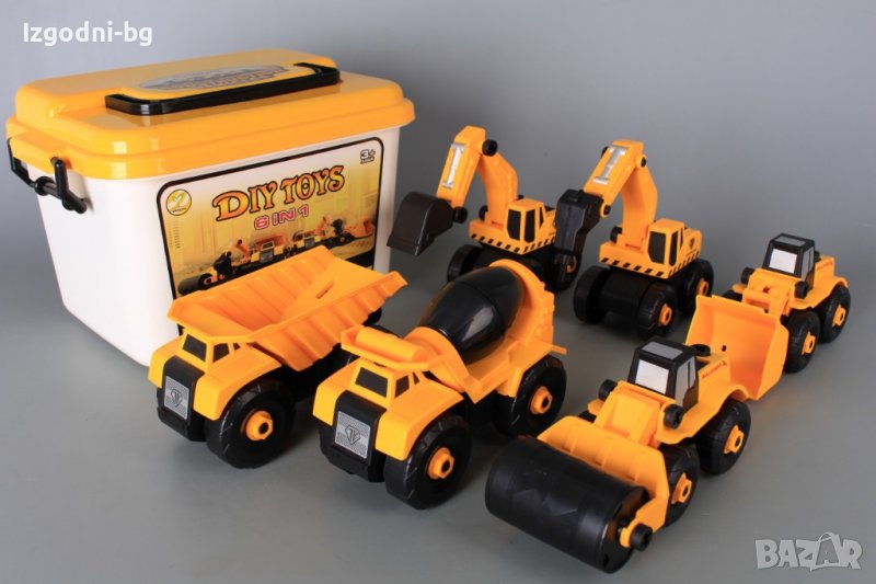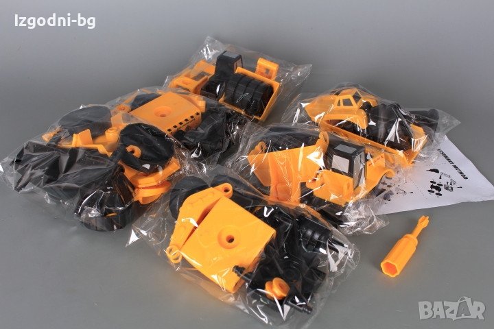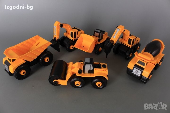- елементи за сглобяване на 6 строителни машини - бетоновоз, камион, валяк и 3 различни багера