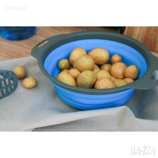 Сгъваем силиконов гевгир за изцеждане на зеленчуци, плодове, паста и други хранителни продукти. Кухненски гевгир, незаменим помощник във всяка кухня.