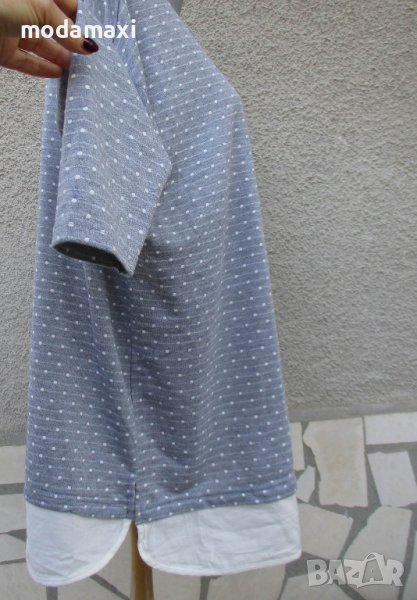 Туника, с бял, памучен подгъв, който сякаш се подава под друга блуза.
