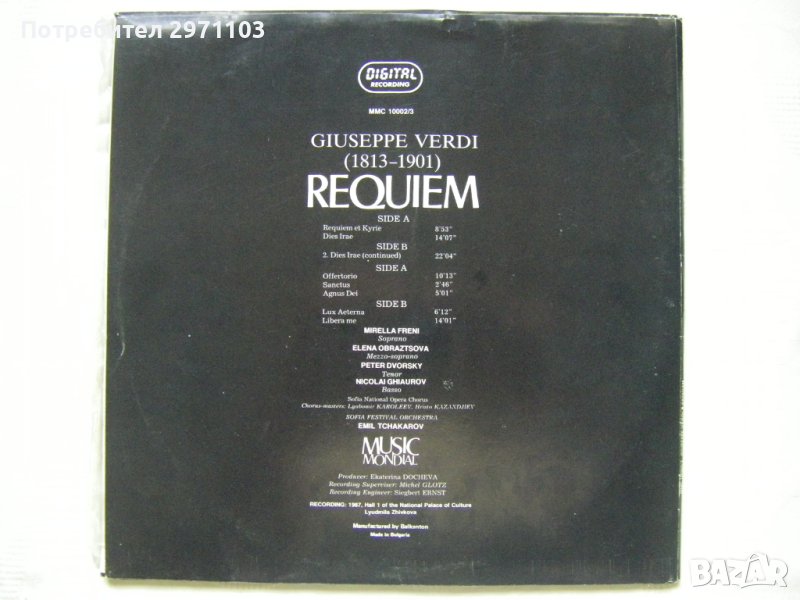 Грамофонна плоча - ММС 10002-10003 (2 плочи), Балкантон / Music Mondial - Джузепе Верди. Реквием