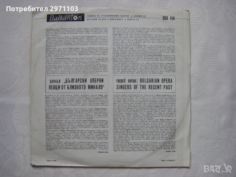 Грамофонна плоча - ВОА 414 - Български оперни певци от близкото миналото - 2част