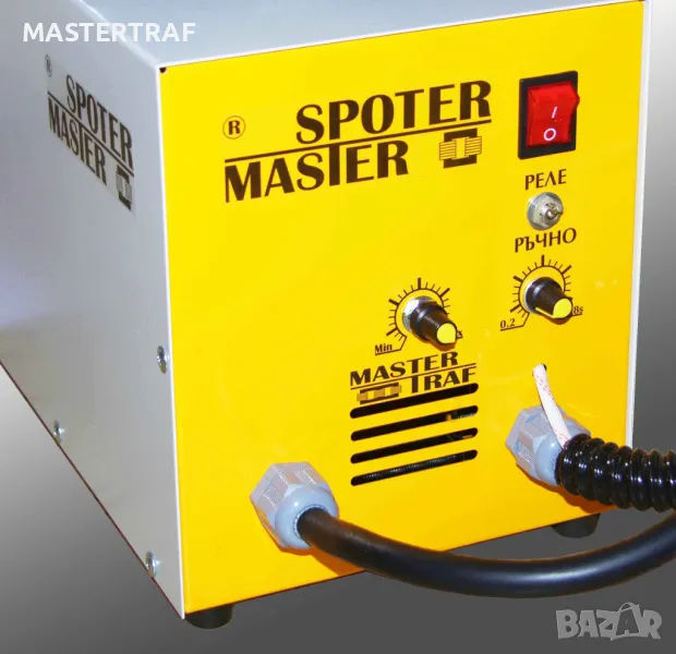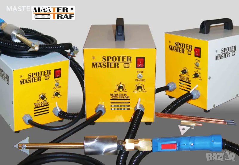 Спотерът е трансформаторен, комбиниран за трифазно и монофазно напрежение 220/380V, за точково и челно заваряване. Апаратът е български, мощен, надежден, предназначен за професионална употреба. Мощността при 380V е в пъти по-голяма, което позволява челно заваряване и възможност за използване на пункшвайц клещи. Машината е предназначена за автотенекеджийски услуги - за изтегляне на вдлъбнатини и изпъване на елементи от ламарина, заваряване на детайли от ламарина в режим на пункшвайц със специален накрайник или клещи (заваряване на елементи от ламарина по калници, прагове и др. изгнили места по шасито), нагряване с медни или коксови електроди. Възможност за регулиране на времето и силата за заваряване в зависимост от дебелината на ламарината. Машината може да се използва и в сферата на изкуството от скулптори, за обработка и заварка на метали.