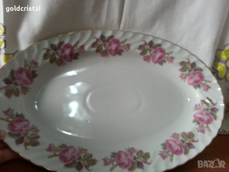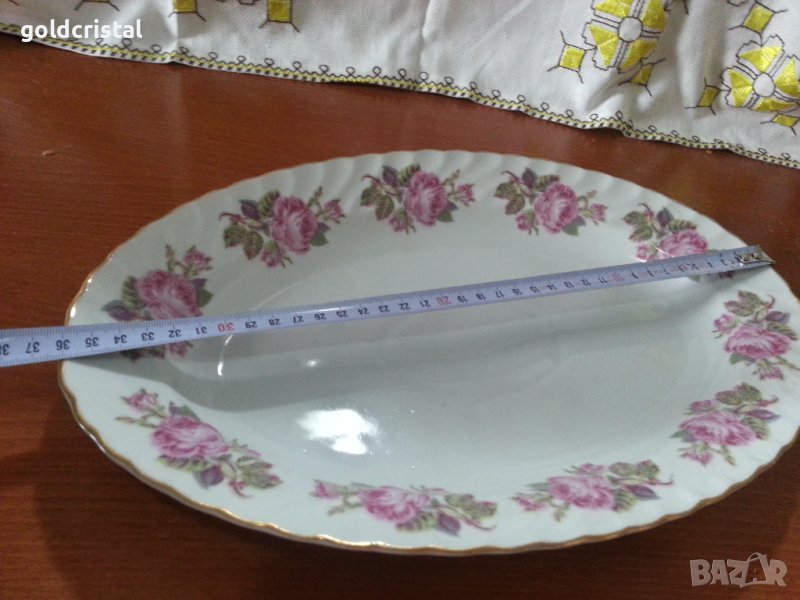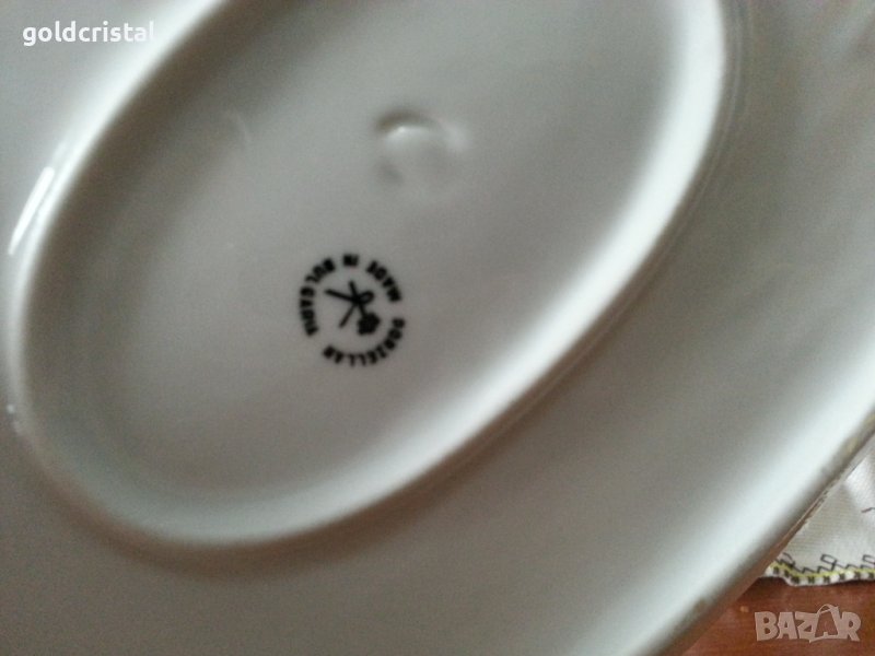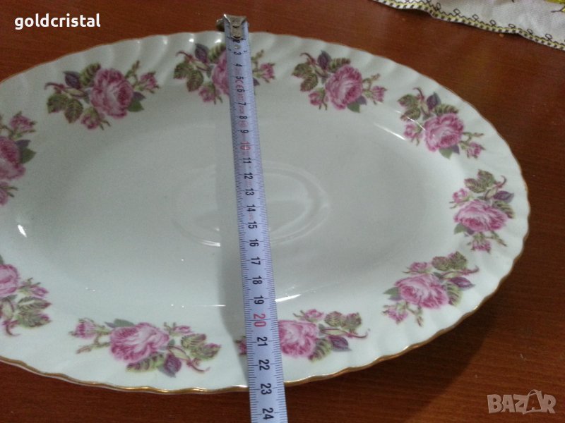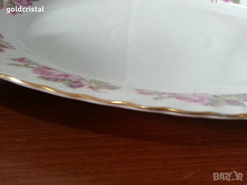 Стар български порцелан плато елипса златен кант без забележки сервиз комплект сет лот ретро арт декор винтидж колекция стари антикварни предмети обзавеждане за дома и семейството подходящо за подарък за ценители и колекционери
