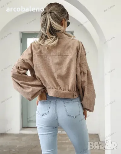 Едноредно късо яке с ръкав-фенер от рипсено кадифе Дамско яке. Моля, използвайте ръководството за размер, показано на нашите снимки. Преди да изберете размер, моля, прочетете внимателно всеки елемент от ръководството за размери. Уникален дизайн, класически стил, ежедневни и удобни. Подходящо е за излети и свободно време. Размерът се измерва ръчно и грешката от 1-3 см е нормална.