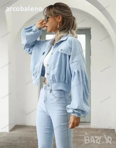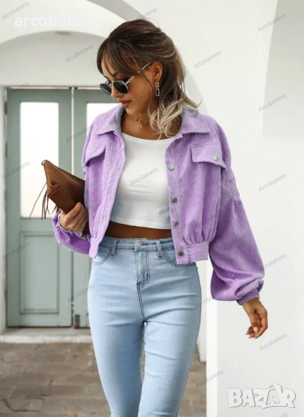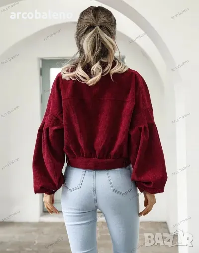 Дамско едноредно късо яке от рипсено кадифе с ръкав-фенер, 5цвята