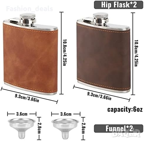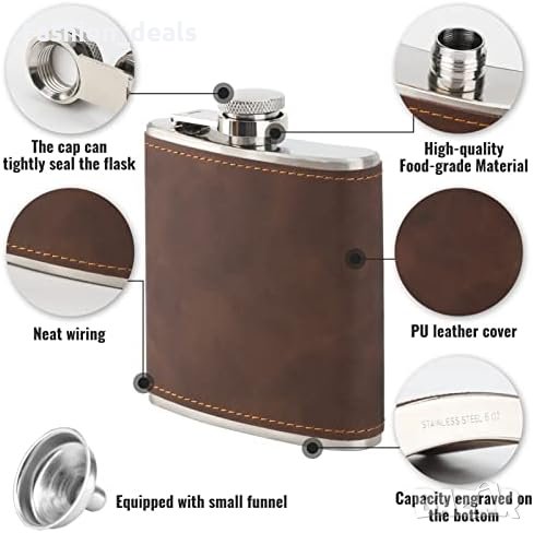 Нови 2 броя бутилки за уиски от неръждаема стомана кожена обвивка Подарък Мъже Жени