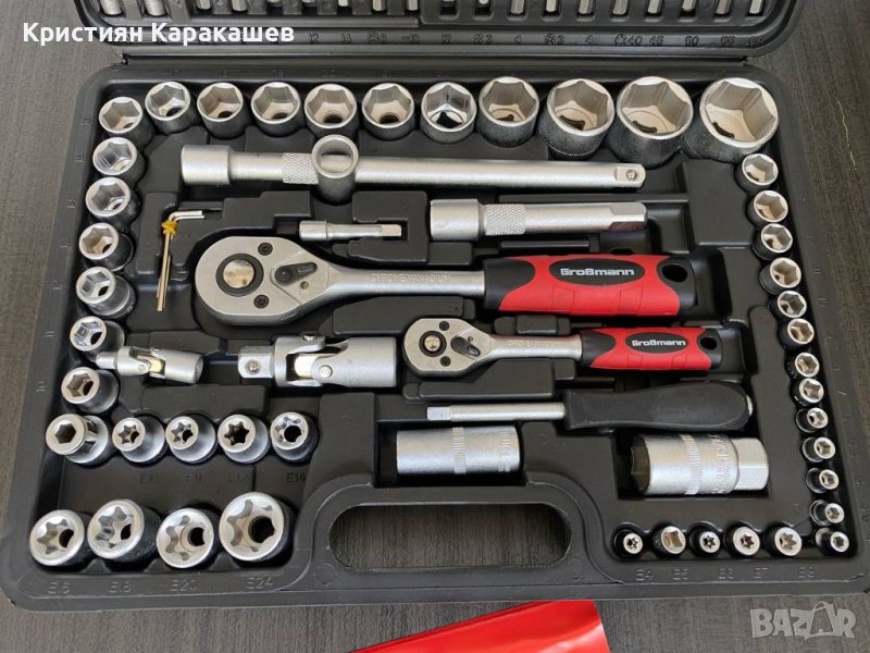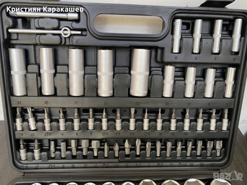 – 17 броя вложки 1/2” къси: 10мм; 11мм; 12мм; 13мм; 14мм; 15мм; 16мм; 17мм; 18мм; 19мм; 20мм; 21мм; 22мм; 24мм; 27мм; 30мм; 32мм