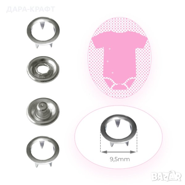 • Употреба - не съдържат никел и са подходящи за бебешки дрехи, лигавници, ленти за залъгалки, спални комплекти