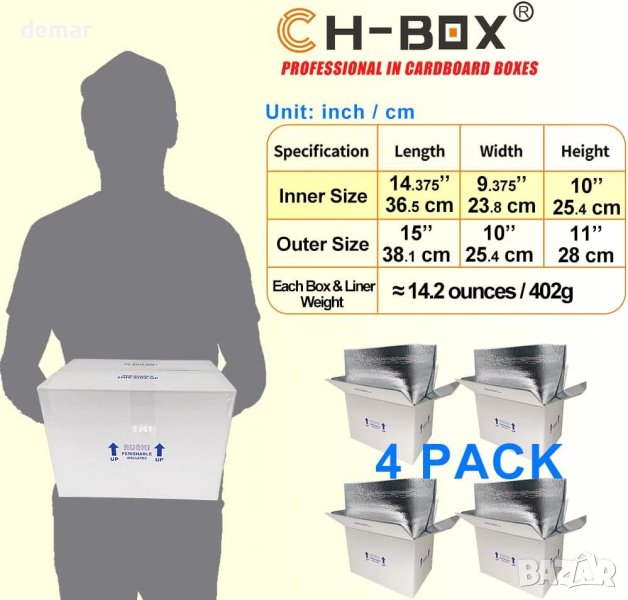 CH-BOX Thermo Chill двойно изолирана кутия с подложка, 4 бр 37x24x26cm