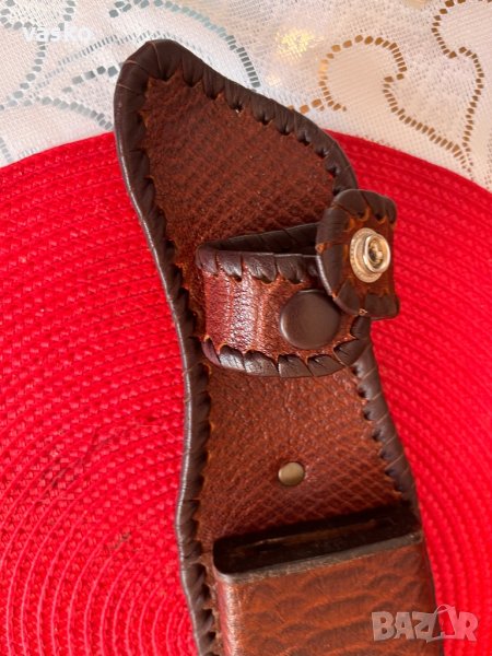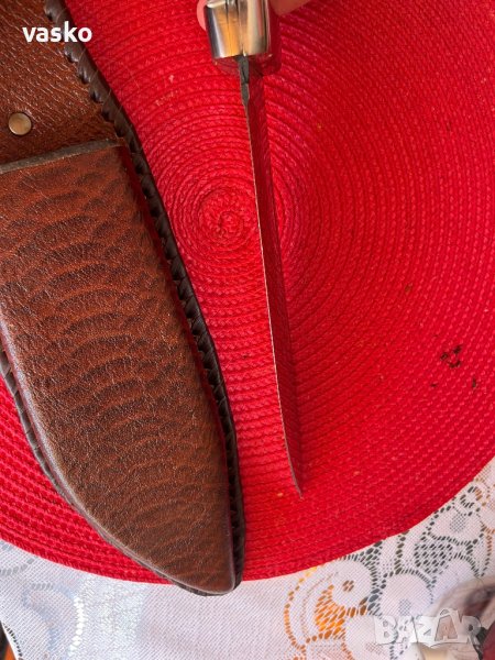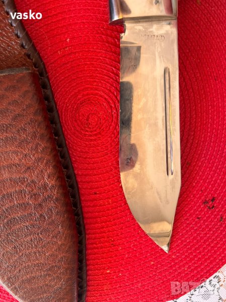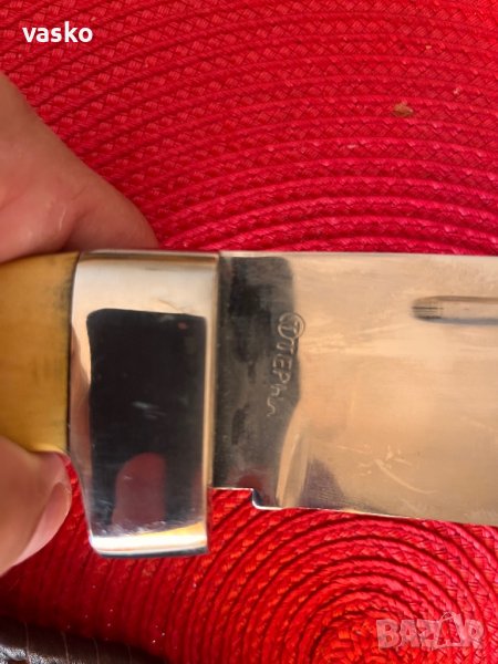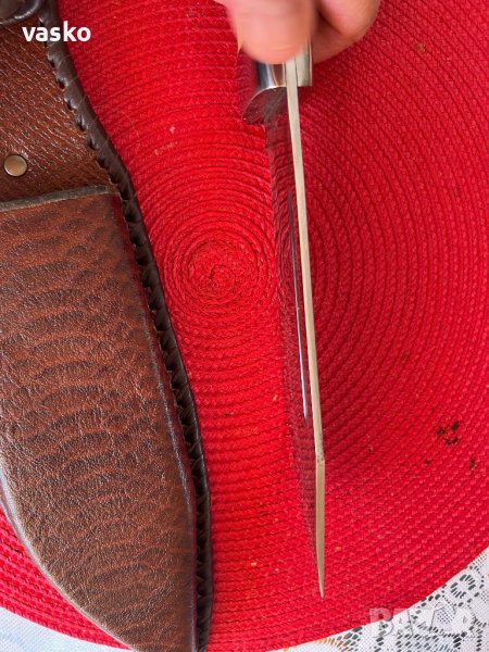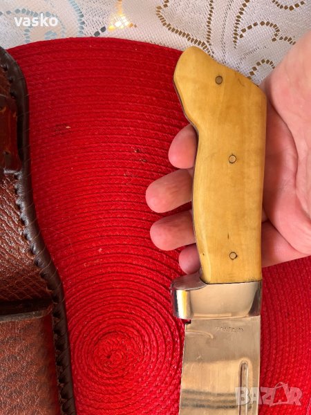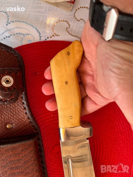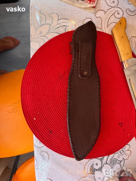 Нож на Терна-меча глава,нов,много голям ,масивен и тежък-обща дължина 33см,дебелина на острието 4мм.На оригинална маркирана заготовка е сложена дръжка от Николай Колев-Варна и е ушита кания специално за ножа,канията е тип ножница и ножа ляга плътно в нея и не се вади.Не ме занимавайте със смешни оферти и глупави коментари!Нямам нужда от мнения!На този нож само да направите тази кания ще ви излезе над 100 лева!!!Цена съм написал-на който не му изнася да си купи друг!