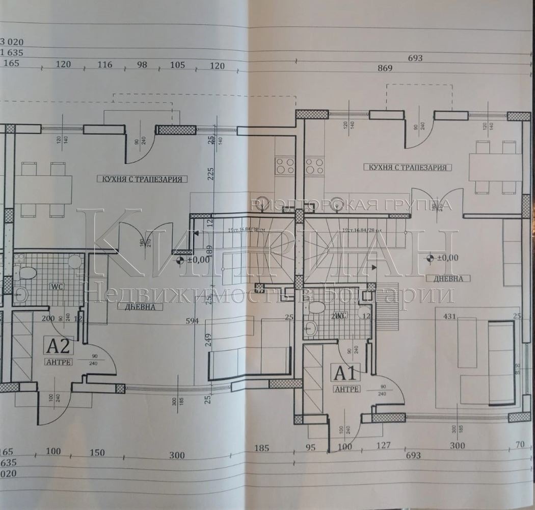 Площ на всяка къща 135 кв.м + 50 кв.м покривна тераса.