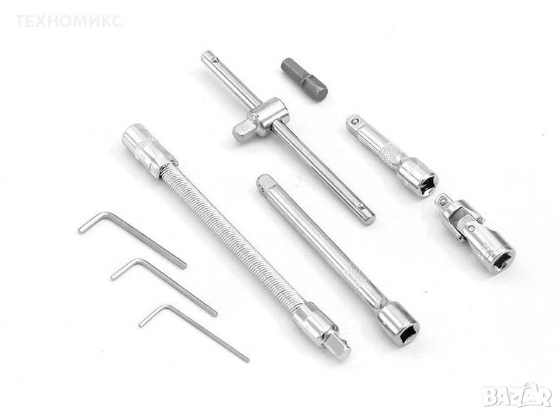 Oписание:Ако се занимавате професионално с ремонт на автомобили или други ремонтни дейности, знаете колко е важно да разполагате с необходимите инструменти, те да са с високо качество и издръжливост. Този комплект от 46 части, съдържа всички необходими инструменти, които могат да бъдат необходими за извършването на ремонтни дейности върху автомобила, къщата, двора, електроуредите, дърводелството. Инструментите са организирани в куфарче с червен цвят, като всеки инструмент си има обособено място и надпис, който указва неговите функции. Организирането на инструментите в куфарче е много практично, по този начин може да разполагате с пълния комплект и набор инструменти по всяко време навсякъде, без опасност от изгубване на някой от компонентите. Куфарчето лесно може да носите в ръка или да го оставите в автомобила. Дръжката е удобна, а размерите са компактни, разполагате с всичко необходимо за да извършите ремонтни дейности, организирано по най-добрия и удобен начин. Комплектът е изработен от висококачествена хром-ванадиева стомана. Въртящ момент 50% по-висок от този на въглеродната стомана, има висока ефективност при предотвратяването на ръжда. Инструментите притежават функцията за бързо освобождаване с бутон, която гарантира, че гнездото е заключено сигурно, докато се използва.Особености:Комплектът с инструменти съдържа следните 46 части:21x гнезда за отвертки: T10, T15, T20, T25, T30, T40, H3, H4, H5, H6, H7, H8, S4, S5.5, S7, PH1, PH2, PH3, PZ1, PZ2, PZ3;13x 1/4 "DR гнезда: 4, 4,5, 5, 5,5, 6, 7, 8, 9, 10, 11, 12, 13, 14 мм;3-ключови ключове с шестостен: 1,5, 2, 2,5 мм;1x 1/4 "DR универсално съединение;1x удължител 1/4 "x 2";1x 1/4 "x4" екстенсон бар;1x 1/4 "x6" гъвкава удължителна лента;1x 1/4 "DR плъзгаща се лента;1x 1/4 "бързо падаща дръжка с тресчотка;1x 6 "дръжка за въртене;1x адаптер;1x калъф за съхранение.Дизайн:Куфарчето с инструменти има компактен дизайн в червено, като за всеки компонент от комплекта има специфично определено място и гнездо, в което да бъде поставен. Куфарчето е изработено от качествен ABS материал, който е устойчив и може да разчитате на неговата сигурност и стабилност. Инструментите в комплекта са изработени от хром-ванадиева легирана стомана, което ви подсигурява високо качество и възможности за дълготрайна работа с комплекта.Технически характеристики:Комплект за ремонт на автомобил- 46 частиЦвят: Червен;Материал: Хром-ванадиева легирана стомана;Тегло: 1200 гр.Какво ще намерите в опаковката:1бр. Куфарче, комплект за ремонт на автомобил- 46 части;Транспортна опаковка.