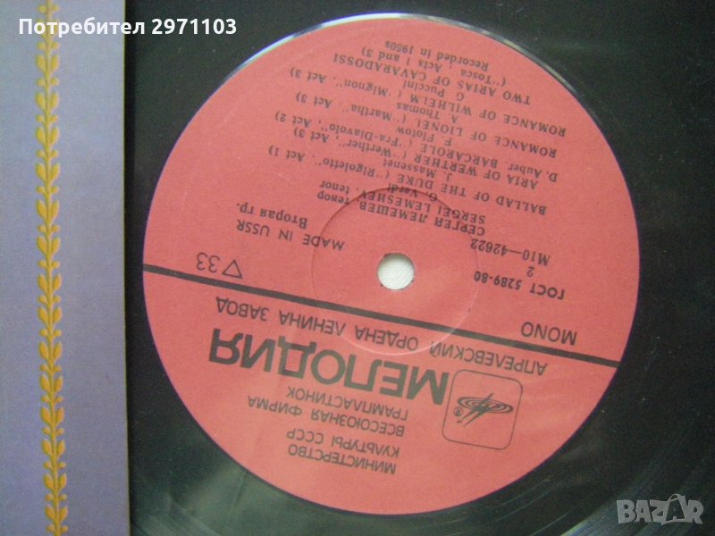 М10 - 42621/2 - Сергей Лемешев – Тенор, Мелодия, 1981 година