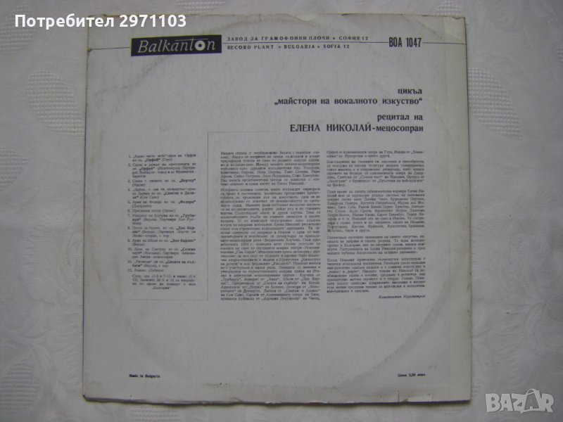 ВОА 1047 - Оперен рецитал на Елена Николай - мецосопран, снимка 1 - Грамофонни плочи - 42237073 ВОА 1047 - Оперен рецитал на Елена Николай - мецосопран, снимка 2 - Грамофонни плочи - 42237073 ВОА 1047 - Оперен рецитал на Елена Николай - мецосопран, снимка 3 - Грамофонни плочи - 42237073 ВОА 1047 - Оперен рецитал на Елена Николай - мецосопран, снимка 4 - Грамофонни плочи - 42237073 1/4