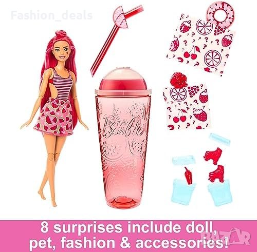 Допълнителни скрити изненади: Вътре в кубчетата лед има още изненади, като гъста мини напитка и ролкови кънки за куклата Барби.