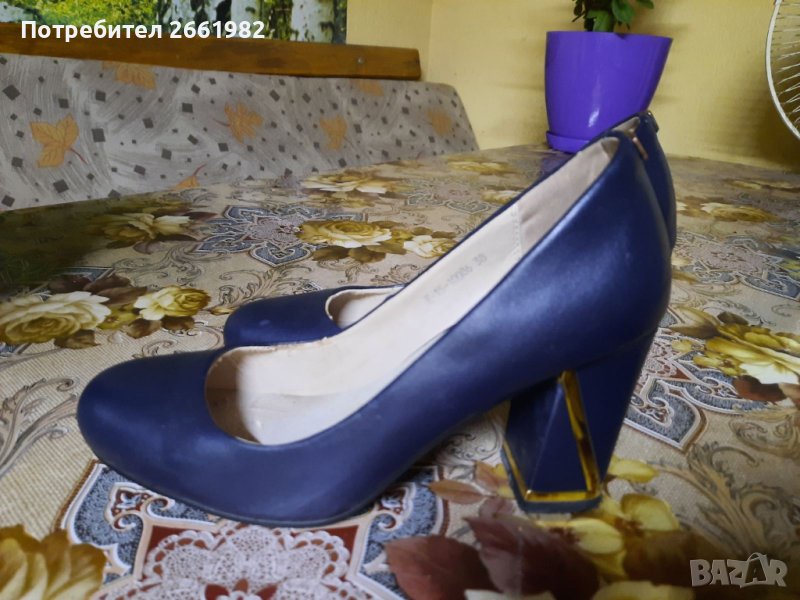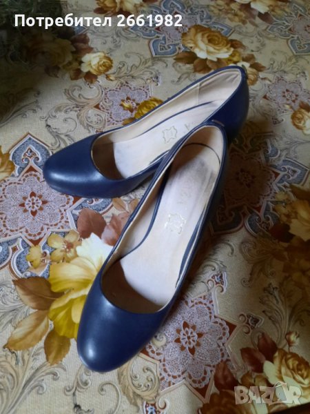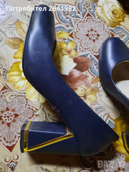 Уникални обувки в тъмносиньо на ток! Естествена кожа!