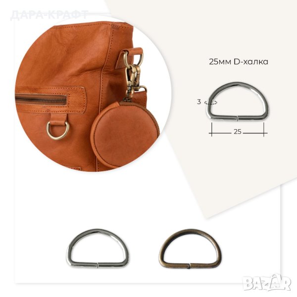 Метални D халки за презрамки, дръжки, поводи и др. Полухалки от 10- 40мм, 10бр