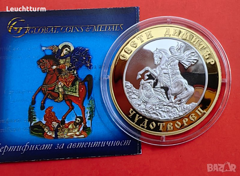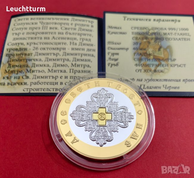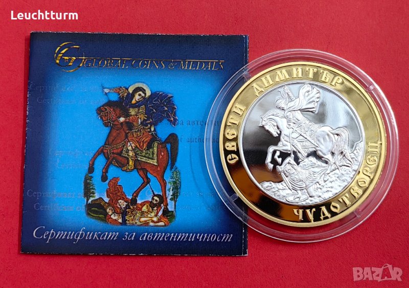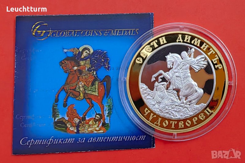 Св.Димитър Чудотворец сребърна емисия със селективно позлатяване → Обява 42242604