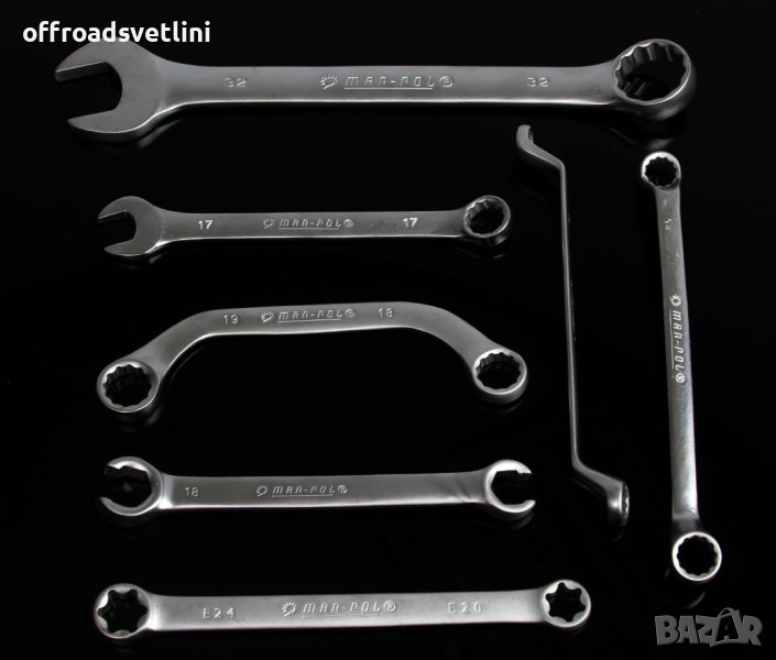 • Комбинирани гаечни ключове: 6, 7, 8, 9, 10, 11, 12, 13, 14, 15, 16, 17, 18, 19, 20, 21, 22, 23, 24, 26, 27, 28, 30, 32