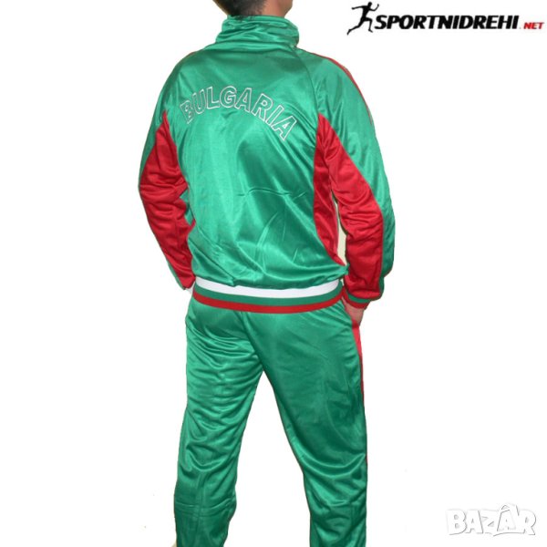 Мъжки спортен екип БЪЛГАРИЯ 485, бяло, зелено, червено, полиестер. Горнището има 2 джоба, долнището също 2 джоба. Всички джобове са със ципове. Екипа се предлага в 3 разцветки.