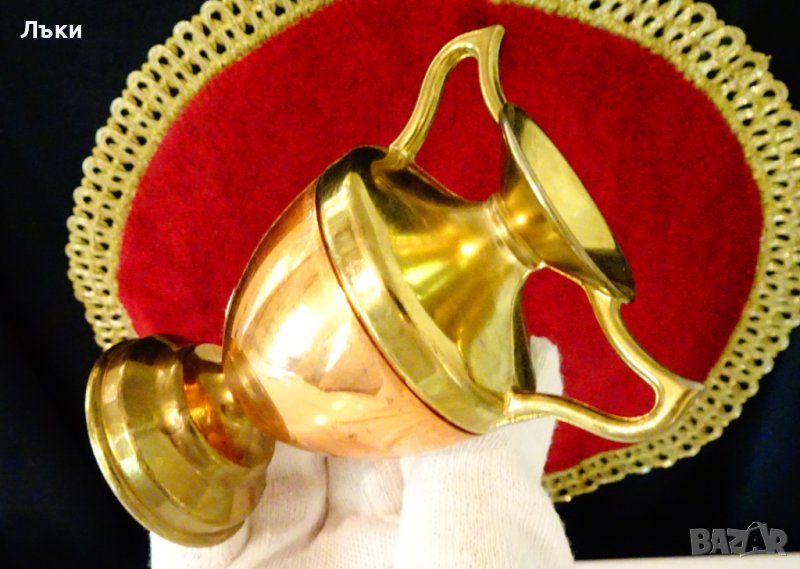 цинк с дебело медно и месингово покритие.Маркиран Made in England.Височина 10 ,дължина с дръжките 8 см.,диаметър 6 см.,тегло 220 гр.
