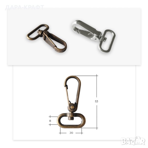 Метални карабинки за чанти - Въртяща се основа - 20мм, 25мм, 30мм, 4бр